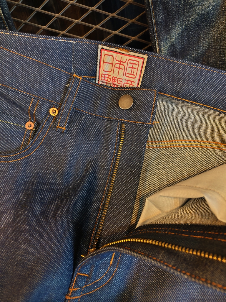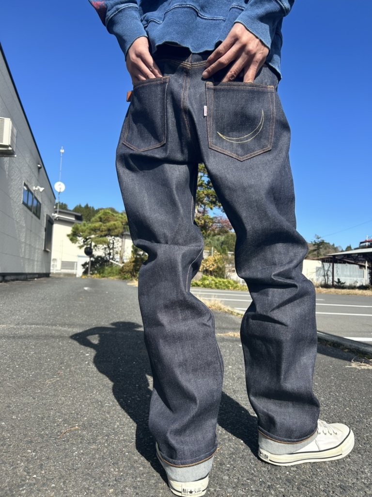 - 特徴としてはバックヨークの3本針による巻縫いとバックポケットへの三日月ステッチです。型はレギュラーストレートでジーンズ好きならどの年代の方にもお薦めできます。 14ozの生地をチョイスしリジットでの提供となります。 洗濯、乾燥後はウエスト約3cmレングスが約3cm詰まりますので考慮の上ご購入下さいませ。